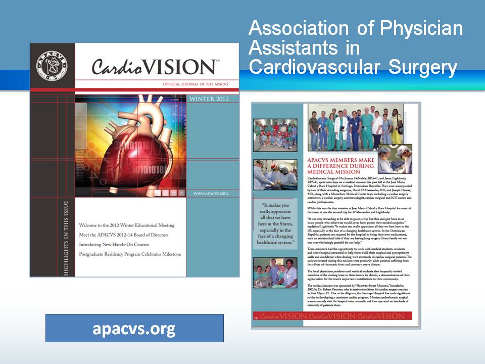 While serving as interim project manager for the Association of PAs in Cardiovasculary Survery in 2011, I produced the CardioVISION newsletter and developed an email program that helped boost conference attendance and membership, resulting in a substantial net profit for the Winter 2012 CME conference.