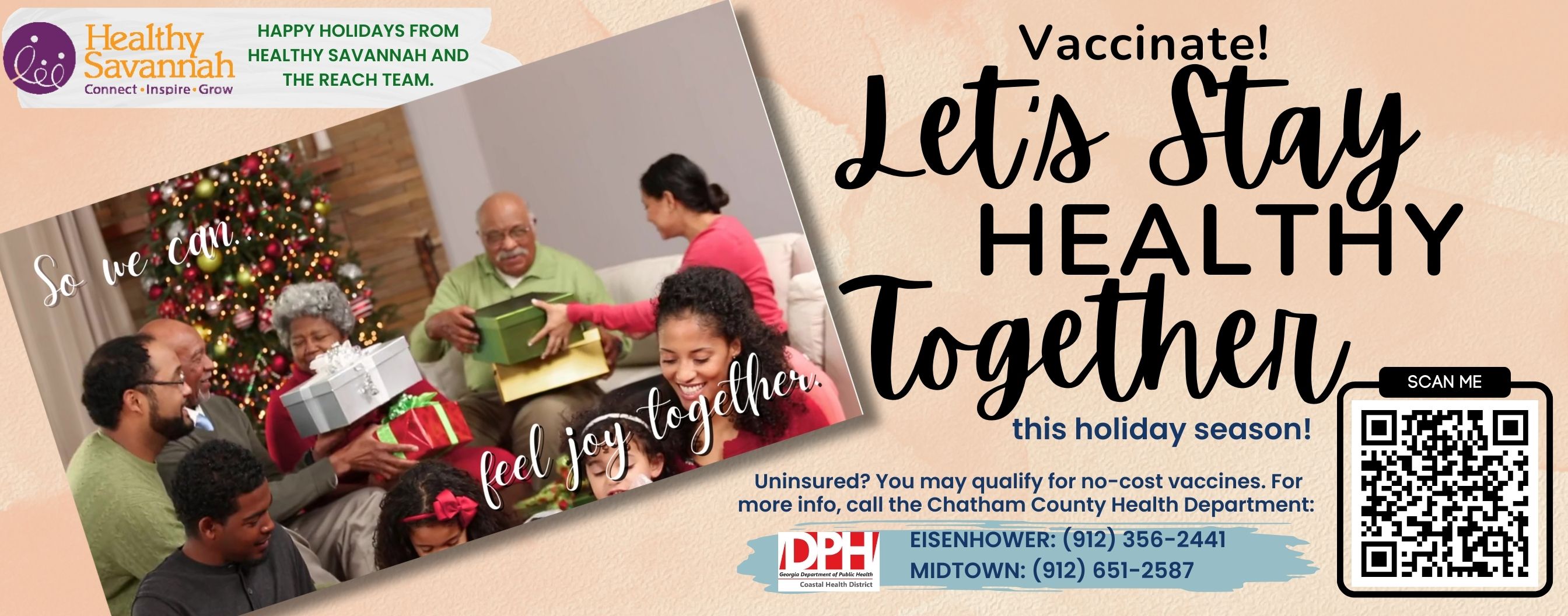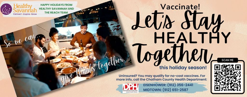 - The Decision to Vaccinate Affects Us All – As the 2024 holiday season was approaching, I worked with Healthy Savannah’s REACH team to develop public service collateral including this video, entitled “Let’s Stay HEALTHY Together”. It is a reminder that as families and friends look forward to gatherings filled with joy, love, and shared traditions, to prioritize their health and that of their loved ones by getting vaccinated.