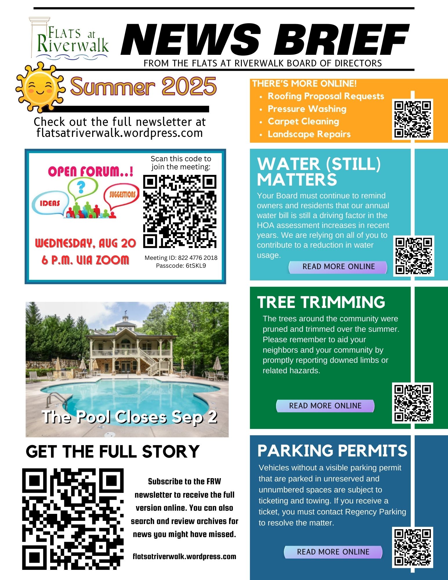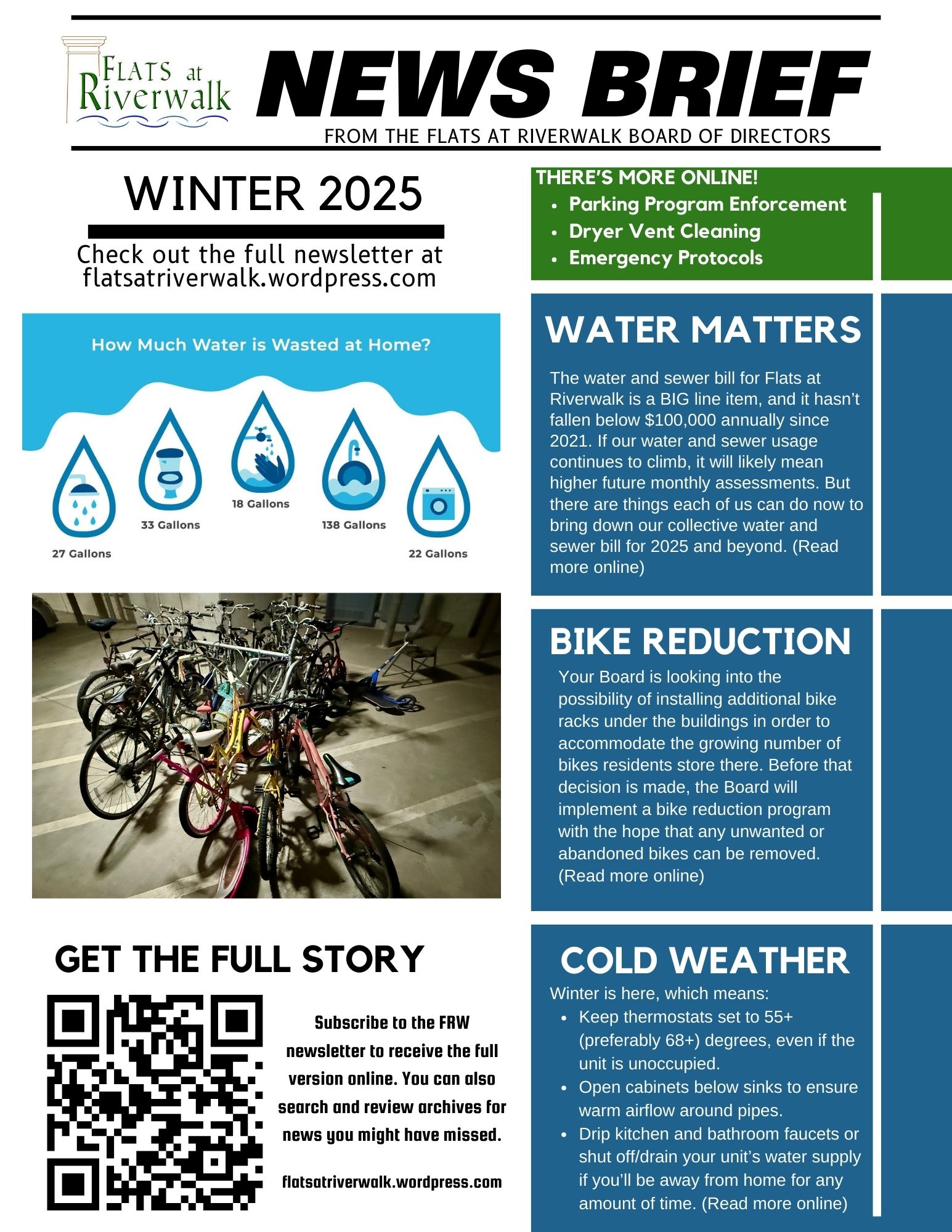 - Flats at Riverwalk Condominium Association Website and online newsletter, 2014-Present